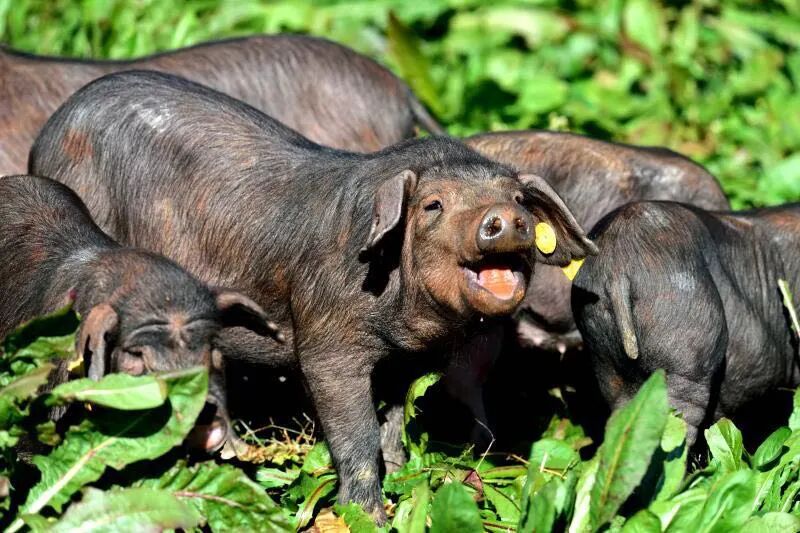 调皮好动的小家伙们山林中拥有足够的活动空间,尽情随意散步、撒欢,使其肌肉中含有较多的肌红蛋白,猪肉也更加红润鲜亮。